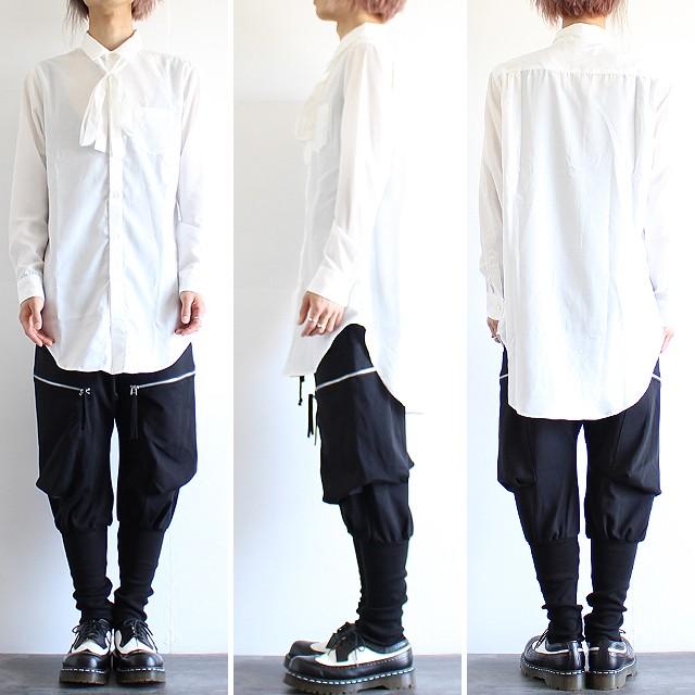 【商品説明】 落ち着きのある光沢とリボンタイが上品かつドレッシーな印象のロングシャツです。 上質な日本製ポリエステル素材による薄手で軽い着心地の生地感で、 柔らかい光沢感と滑らかな肌触りが上品な雰囲気を醸し出しています。 メインポイントのリボンタイは襟裏から一体化している仕様で、 蝶々結びやネクタイ結びはもちろんそのまま垂らしても様になるので複数のアレンジを楽しめます。 緩やかにラウンドしたサイドスリットによって前後の着丈差が絶妙で、 レイヤードの際にインナーとの好バランスを生んでくれます。 袖口部分にはさりげないアクセントのダーツをあしらっていて、 立体感のあるメリハリが生まれる様に意識しています。 ボディと同カラーのボタンを採用することで全体の統一感を高めており、 小振りなサイズ感がスッキリとした印象を与えてくれます。 さりげない胸ポケットに加えスッキリとした細身シルエットはドレッシーなスタイルが特に好相性で、 ロング丈特有の縦長を活かして綺麗なボディラインを表現しました。 スキニー・レギンス系でキッチリ感が出るIラインのスタイリングはもちろん、 ワイドパンツやスカートと合わせてメリハリを出すのもオススメです。 シンプルにそのままでもジャケットやコートのインナーとしてもロングシーズン活躍してくれる1枚です。
