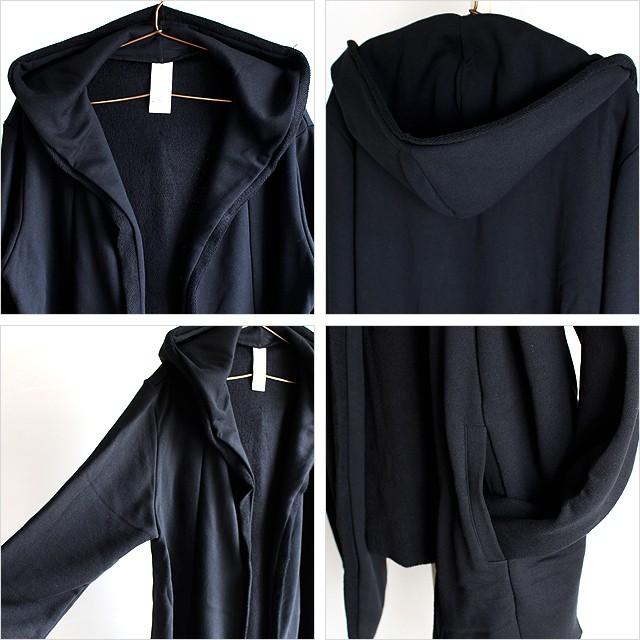 【商品説明】 存在感抜群のたっぷりしたシルエットで絶妙なゆるさのコーディガンです。 上質な日本製コットンによる柔らかな肌触りを実現しており、 裏毛の優しい生地感で快適な着心地を感じられます。 同じブラックでも表地と裏毛で若干の明暗差を出しており、 敢えて長めにした袖はロールアップする事でさりげないワンポイントになってくれます。 トッパーとは裾に向けて緩やかなAラインに広がった仕様の事で、 主にフロントボタンの無いロングタイプのデザインを指します。 カッチリとした印象のコートとラフに羽織れるカーディガンの特長をMIXしたデザインで、 カジュアルな中にもシックなニュアンスが感じられます。 サラッと羽織るだけで綺麗なラインがフロントから生まれてくれ、 上品さのあるショールカラーの様な雰囲気を出す為に生地量を計算しています。 袖や裾等の各ポイントの生地先は切りっぱなしにしたややラフな仕上がりで、 ステッチでロックを掛ける事でほつれ過ぎるのを防止するよう配慮しています。 フロント両サイドには深く大きめのポケットを用意しており、 デザイン性と調和する様にさりげない機能性を目指しました。 メンズ着でやや長め・レディース着でしっかりとしたロング丈の着丈感で、 ふっくらしたボリュームのビッグフードと相まって余裕のある雰囲気を纏う事が出来ます。 インナーにはカットソーでもシャツでもそれぞれ違った雰囲気でマッチしてくれ、 スキニーでメリハリを出したりスカートでゆる感を強調したりコーデの可能性が広がるオススメの1枚です。