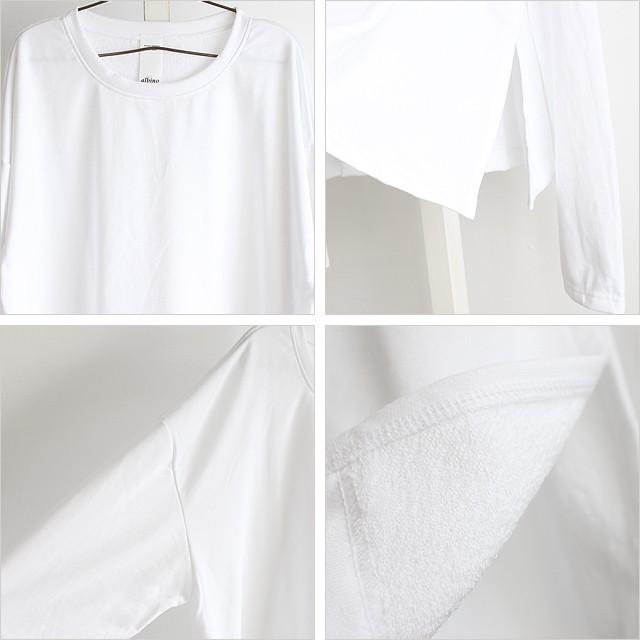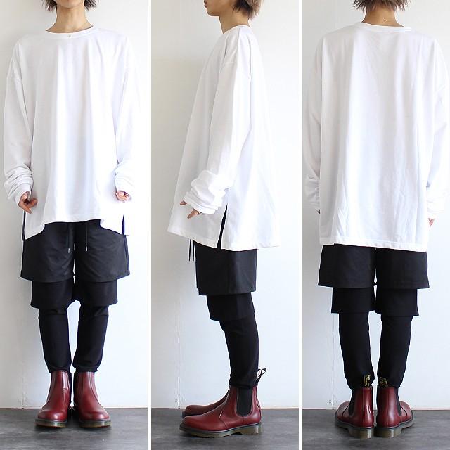 【商品説明】 ダボっとしたルーズな袖が絶妙にゆるい雰囲気のスウェットです。 上質な日本製ポリエステル×コットンの混紡素材が柔らかな肌触りで、 薄手に仕上げた軽い裏毛の優しい生地感が快適な着心地を実現しています。 敢えて着丈とほぼ同サイズにした袖はワンポイントとして存在感あるロングデザインで、 ミニマルに纏めた全体に手元からクシュッとしたアクセントを生んでくれます。 ドロップショルダーを採用する事でフェミニンな雰囲気を演出し、 肩から袖の落ち感によってビッグシルエット特有のゆるさを更に引き立てています。 全体にメリハリを出す為にザックリとサイドスリットを施していて、 オーバーサイズのワイドボディを出来るだけ野暮ったくならない様に仕上げました。 スキニー・レギンス系を合わせて上下のシルエットに差を出すのはもちろん、 ワイド系のボトムスと合わせて更にラフでゆるいスタイルを表現するのもオススメです。 カーデ等軽い羽織りを合わせたりシャツを中に着て雰囲気を変えたり、 レイヤードのベースアイテムとして幅広く活躍してくれる着回し力の高い1枚です。