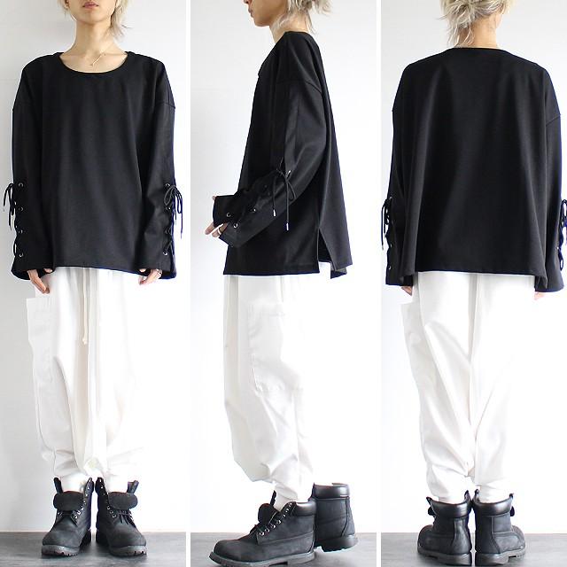 【商品説明】 袖部分に大胆な編み上げリボンを施して存在感あるアクセントを利かせたスモックです。 滑らかで柔らかい光沢感と絶妙なとろみが感じられる上質な混紡素材による日本製で、 適度に薄く軽い生地感と横方向にストレッチが利いた快適な着心地に仕上げています。 スモック特有のオーバーサイズでドルマンのようなワイドボディが存在感を発揮していて、 頭からすとんと着用出来るゆったりラフな印象に仕上げています。 ザックリとスリットを入れた袖には編み上げデザインを大胆に施し、 手元の邪魔にならない様に袖上部でリボン結びをする事で利便性にも配慮しています。 全体にメリハリを出す為にボディサイドにもさりげなく小振りなスリット加える事で、 ワンポイントとして動きに合わせた軽さが感じられます。 着丈を短めに設定したコンパクトシルエットなので特にボリュームのあるボトムスとの相性が良く、 スカートやワイドパンツ等に合わせればそれぞれの特長が引き立ちます。 特長である編み上げを活かす為にベスト等のノースリーブ系アイテムとのレイヤードもオススメで、 ロングシーズンで色々なスタイリングのメインとなってくれる1枚です。