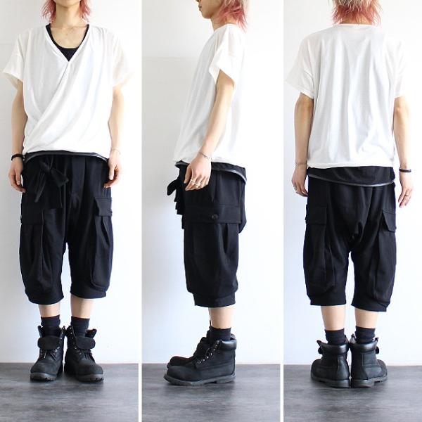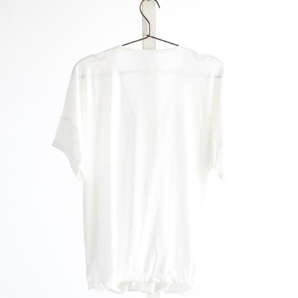 【商品説明】 胸ボタンの留め外しによって2wayで着回せるカシュクール風カットソーです。 上質な日本製の混紡素材が適度に伸縮性のある柔らかな肌触りを実現しており、 程良い光沢感と滑らかな生地感で上品な雰囲気に仕上げています。 フロントにはカシュクールをモチーフにした襷掛けの様なデザインを採用し、 ワンポイントとなる様に計算したドレープに加えシンプルなバックとの視覚的なメリハリも生んでいます。 胸部分に用意した小振りなボタンの留め外しによって2wayでの気回しが出来、 他アイテムとの合わせ方次第で違った印象のスタイルが簡単に完成します。 スッキリ短い袖丈に加えゆったりとしたドロップショルダーで仕上げており、 シンプルに合わせてもしっかりと映えるので軽快なスタイリングが表現出来ます。 コンパクトな着丈を活かしてボリュームのあるボトムスと合わせるスタイルが特にオススメで、 1枚着はもちろんシャツや長袖トップスとのレイヤードでロングシーズン活躍してくれます。