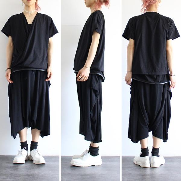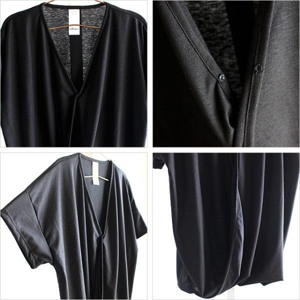 【商品説明】 胸ボタンの留め外しによって2wayで着回せるカシュクール風カットソーです。 上質な日本製の混紡素材が適度に伸縮性のある柔らかな肌触りを実現しており、 程良い光沢感と滑らかな生地感で上品な雰囲気に仕上げています。 フロントにはカシュクールをモチーフにした襷掛けの様なデザインを採用し、 ワンポイントとなる様に計算したドレープに加えシンプルなバックとの視覚的なメリハリも生んでいます。 胸部分に用意した小振りなボタンの留め外しによって2wayでの気回しが出来、 他アイテムとの合わせ方次第で違った印象のスタイルが簡単に完成します。 スッキリ短い袖丈に加えゆったりとしたドロップショルダーで仕上げており、 シンプルに合わせてもしっかりと映えるので軽快なスタイリングが表現出来ます。 コンパクトな着丈を活かしてボリュームのあるボトムスと合わせるスタイルが特にオススメで、 1枚着はもちろんシャツや長袖トップスとのレイヤードでロングシーズン活躍してくれます。