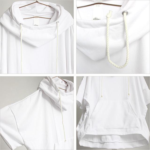 【商品説明】 ドルマンスリーブ風のビッグシルエットで仕上げたスウェット生地のポンチョパーカーです。 上質な日本製ポリエステル×コットンの混紡素材が柔らかな肌触りで、 薄手に仕上げた軽い裏毛の優しい生地感が快適な着心地を実現しています。 特長的なビッグフードには太目の捻じれドローコードを通し、 デザイン的なワンポイントとしてはもちろん絞る事でフードの変化を楽しむ事が出来ます。 敢えて着丈とほぼ同サイズにしたボディは存在感抜群のワイドデザインで、 ミニマルに纏めた全体にドルマン風のシルエットがアクセントを生んでくれます。 ドロップショルダーを採用する事でフェミニンな雰囲気を演出し、 肩から袖の落ち感によってビッグシルエット特有のゆるさを更に引き立てています。 フロントには間口が大きく存在感の有るカンガルーポケットを施しており、 プルオーバーパーカーの特長をシンプルに取り入れています。 前後で着丈を変えているのでレイヤードスタイルにもマッチしてくれ、 インナーに長袖を合わせればロングシーズン活躍してくれます。 メンズ・レディース共に幅広でゆったりした5分袖前後の丈感で、 独特の自然なゆるさとこれからの季節を意識した軽さが感じられます。 ボトムスのシルエットによって雰囲気が変わる事に加え羽織り系のインナーとしても活躍してくれ、 モード以外にもカジュアルからストリートまで幅広い着回しが利く1枚です。