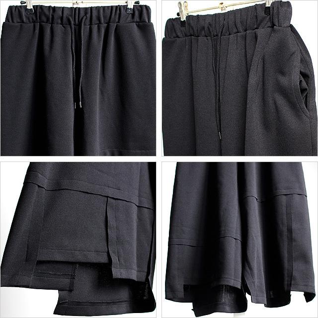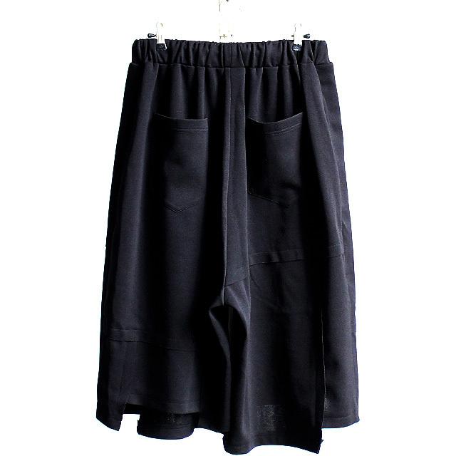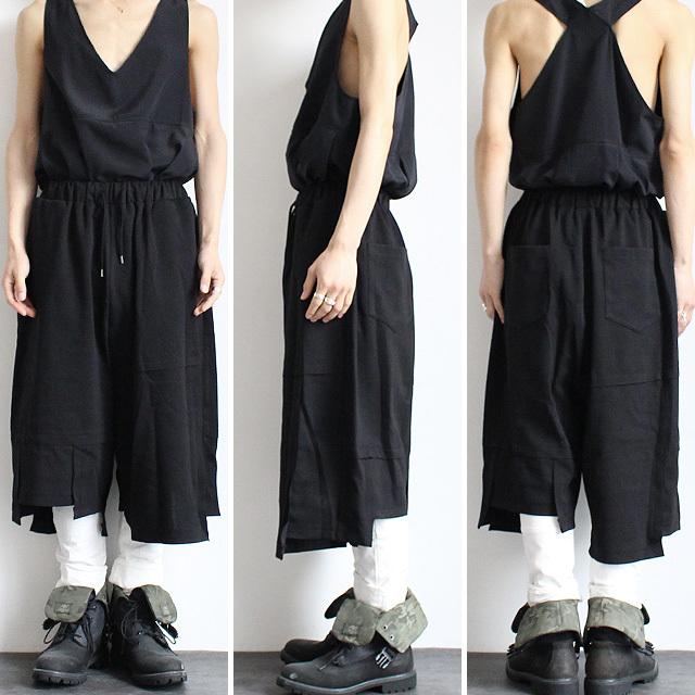 【商品説明】 裾にランダムなジグザグカット加工を施したサルエルショーツです。 滑らかで柔らかい光沢感と絶妙なとろみが感じられる上質な混紡素材による日本製で、 適度に薄く軽い生地感と横方向にストレッチが利いた快適な穿き心地に仕上げています。 裾にはランダムな雰囲気でカット加工した生地をフェイクレイヤード風に仕上げていて、 シンプルながらジグザグラインによる変形デザインが特長的で独特な存在感を発揮してくれます。 前後それぞれの生地でアシンメトリーに仕上げつつ、 長い方を左右逆にする事で一見シンメトリーに整っているかの様なバランスを追求しました。 サルエル特有の深い股上がシルエットにアクセントを生み出し、 中性的な世界観と動き易いワイドシルエットをラフに見せてくれる実用性が兼ね備わっています。 温暖な時期を意識して軽さが出る様にクロップド丈に設定していて、 シンプルにこの1本で穿いたり下にレギンスを合わせてレイヤードスタイルにもマッチします。 ウエストゴムを採用する事でリラックス感の有る穿き心地を実現しており、 毎日でも合わせたくなるストレスフリーなデザインに仕上げています。 付属のドローコードはサイズ調節用に結んだり、 そのまま垂らしてさりげないアクセントにも使えます。 サイド・バックのポケットは間口を広く深めに用意していて、 デザイン性だけでなく収納面に於ける機能性も拘って追求しています。 ビッグサイズ系のトップスを合わせてトータルでゆるいスタイルはもちろん、 上をタイトに纏めて綺麗なAラインに合わせるスタイルもオススメです。 カジュアルなスニーカーからシックなブーツまで合わせるアイテムによって違った表情を見せてくれ、 ラフな雰囲気でコーデのベースとして幅広く活躍してくれる1本です。