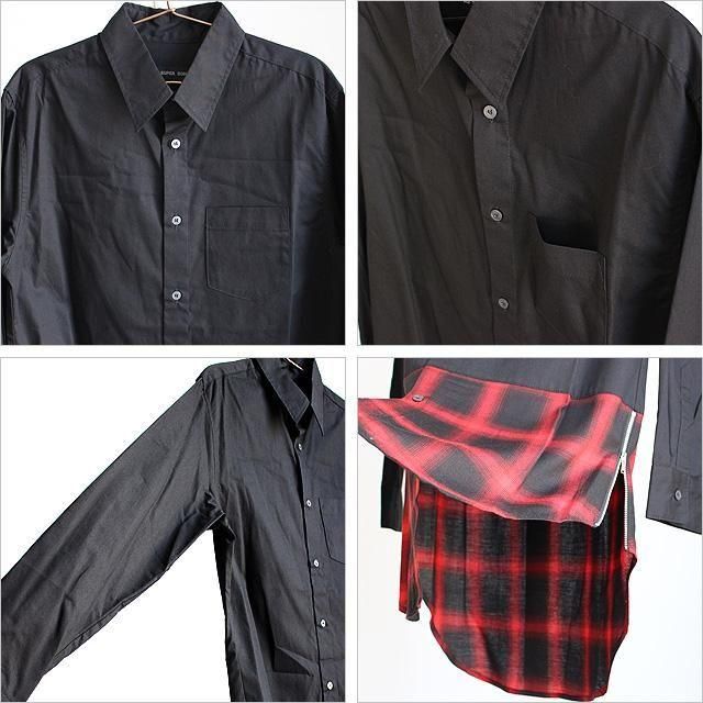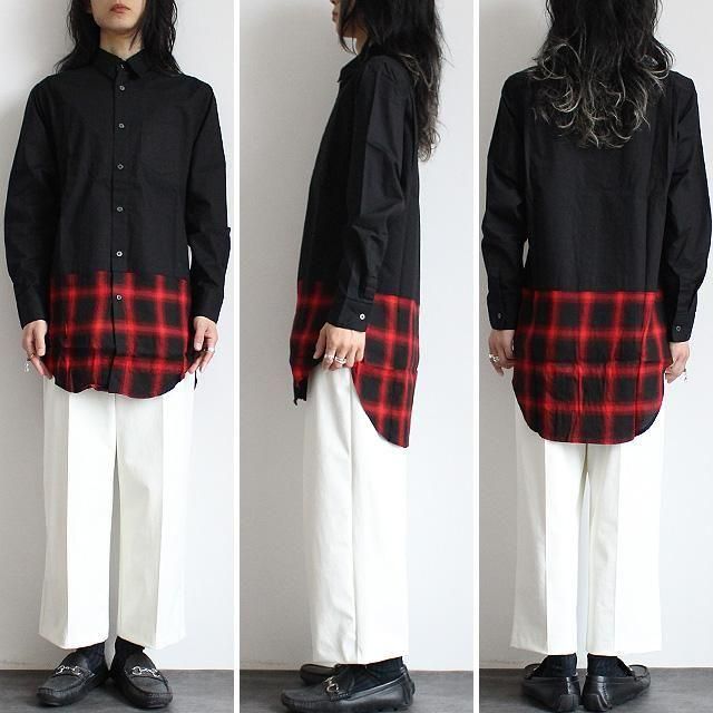 【商品説明】 プレーンデザインに印象的なチェック柄とZIPデザインをプラスしたドレスシャツです。 上質な綿素材をもとに日本製の確かな縫製で作られており、 張りのあるしっかりとした生地感が上品な雰囲気を醸し出しています。 ボディと同じカラーのボタンを採用する事で全体の統一感を高め、 小振りなサイズ感がスッキリとした印象を与えてくれます。 印象的なチェック柄は抑えの利いた落ち着きのあるトーンで仕上げられ、 カジュアルになり過ぎないよう計算されたデザインを実現しています。 胸ポケットやザックリと深めに施されたスリットにはZIPが施されており、 シックな雰囲気の中にアクセントを加えたデザイン性の高い仕上がりです。 スッキリとしたシルエットはドレッシーなスタイルにもマッチするよう計算されていて、 ロング丈特有の綺麗な縦長ボディラインを表現してくれます。 フロントの開け・閉めはもちろんベスト等とのレイヤードといった着回し力の高いデザインで、 モード・キレイ目・ロックと幅広いコーデのベースになってくれるオススメの1枚です。