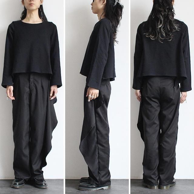 【商品説明】 アーチ状の裾デザインで仕上げられた遊び心溢れるスウェット生地のトレーナーです。 上質な日本製コットン素材が柔らかな肌触りで、 軽い裏毛のふっくらと優しい生地感によって快適な着心地が実現されています。 両サイド裾部分に施されたアーチ状のロングデザインが視覚的な動きを生み出しており、 絶妙なドレープラインと相まって独特の雰囲気を醸し出しています。 ラフなワイドボディによってフェミニンな雰囲気が演出され、 ゆったりとした落ち感でビッグシルエット特有のゆるさをより一層感じられます。 スッキリとコンパクトなショートタイプの着丈に設定されているので、 ボリューミーなボトムスを活かすスタイルで特にマッチしてくれます。 ポケットやリブ等を省いたソリッドなデザイン性に纏められ、 各ポイントで拘りが感じられつつミニマルなディテールワークが光ります。 メンズ着でジャストからやや長め・レディース着でたっぷりとした長袖の丈感で、 ルーズでありながら上品さも醸し出された絶妙なバランスに仕上げられています。 シンプルに1枚着は勿論カーデやジャケット等のインナートップスとしても活躍してくれ、 モード・ストリート・スポーツ系と言った幅広いスタイルでロングシーズン着回せる1枚です。 ※こちらの商品は受注生産アイテムですので、 ご注文頂いてから10日〜15日程お時間を頂きます事を予めご理解下さい。