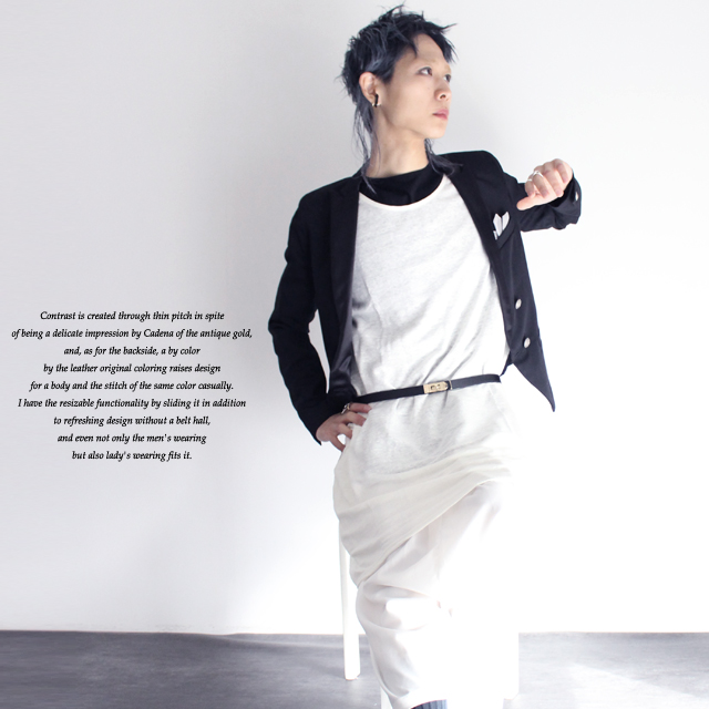 機能的なサイズ可変デザインとゴールドのカデナバックルが印象的な本革ベルトです。