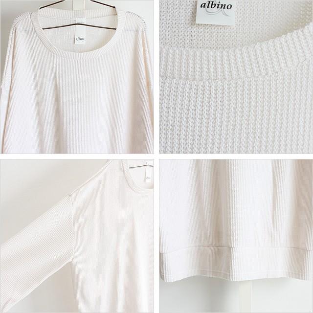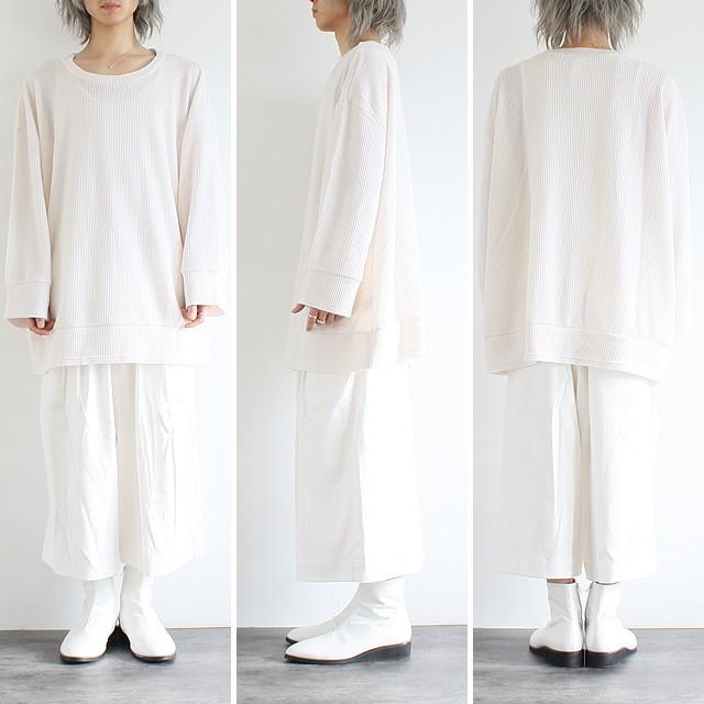 【商品説明】 グランジデザインを軽やかなサマーニットで仕上げたビッグトレーナーです。 アクリルをベースにした日本製の上質な混紡素材がさりげない光沢感を生み出しており、 凹凸感のある表情豊かな生地が肌離れの良い軽い着心地を実現しています。 かぎ編みによる適度な透け感が軽やかな印象を与えてくれ、 サラッとシンプルに1枚着でもこなれ感ある雰囲気を表現出来ます。 袖口・裾共に施しているワイドリブを切りっぱなしにしたグランジ感のある仕上がりで、 ステッチでロックを掛ける事でほつれ過ぎるのを防止するよう配慮しています。 かなりオーバーサイズのワイドボディを出来るだけ野暮ったさの無いよう綺麗に纏めて、 独創的でありながら上品さも感じさせるルーズシルエットを目指しました。 ドロップショルダーを採用する事でフェミニンな雰囲気を醸し出しており、 肩から袖の落ち感によってビッグシルエット特有のゆるさをより高めています。 メンズ・レディースどちらの着用でも指先まで隠れるくらいかなり長めの丈感で、 メインとして1枚着はもちろんジャケットやコートのインナーとしてもオススメです。 スキニー・レギンス系パンツにボリュームのあるスニーカーやブーツを合わせるYラインや、 敢えてワイド系パンツと合わせるダボゆるのIラインコーデが特にオススメの1枚です。