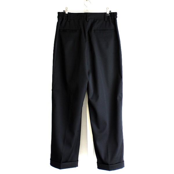 【商品説明】 ラフなシルエットにクラシカルなタックを取り入れたワイドスラックスです。 上質な日本製混紡素材によるしなやかで上品なとろみのある生地感で、 張りのある風合いが快適な穿き心地を実現しています。 クラシカルなツータックが動きやすさとメリハリを生んでいて、 ルーズになり過ぎないよう洗練されたラフなワイドシルエットを実現しています。 ワイドパンツにありがちなウエストがゆる過ぎるのを回避出来るよう綺麗なラインを目指していて、 絞ったウエスト・ワイドな渡りから裾に掛けて細くなっていくテーパードの要素も取り入れています。 ウエストはサイド部分のみゴム仕様を取り入れていて、 スラックス特有のカッチリ感にこだわりながら気軽に着回せるように配慮しています。 レディース着用でもマニッシュなスタイルにピッタリなサイジングで、 トップスインとベルトでウエストマークする事でよりスタイリッシュに合わせられます。 裾は標準でダブル仕様を採用しており、 折りジワを気にせずシンプルにこなれ感を演出してくれます。 両サイドとバックのポケットは深く大きめに用意しているので、 機能性においても抜かりなく使いやすさを追求しています。 リラックス感のあるゆるい雰囲気と存在感のある上品さを兼ね備えていて、 幅広いスタイルで活躍してくれるオススメの1本です。