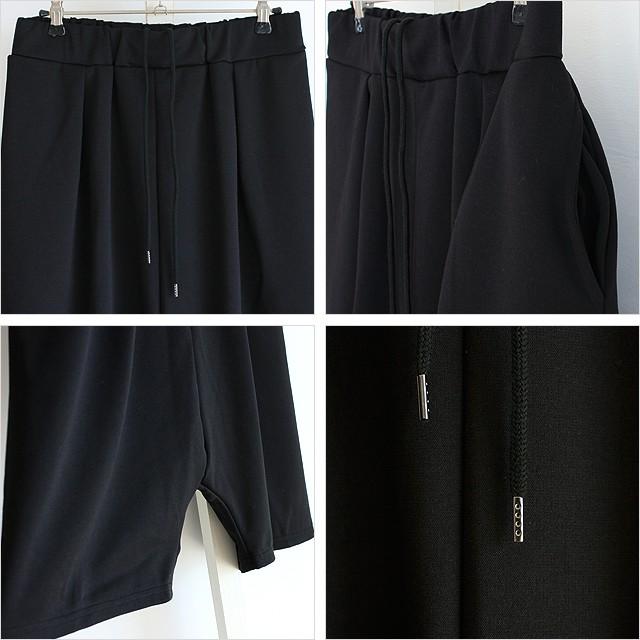 【商品説明】 プリーツの上品さとサルエル特有のリラックス感をMIXさせたショーツです。 滑らかで柔らかい光沢感と絶妙なとろみが感じられる上質な混紡素材による日本製で、 適度に薄く軽い生地感と横方向にストレッチが利いた快適な穿き心地に仕上げています。 サルエル独特の股上の深さがシルエットにアクセントを生んでいて、 これからの季節を意識して軽さが出るようクロップド丈に設定しています。 ウエストゴムを採用する事でリラックス感のある穿き心地を実現しており、 毎日でも合わせたくなるストレスフリーなデザインに仕上げています。 付属されたドローコードはサイズ調節用に結んだり、 そのまま垂らしてさりげないアクセントにも使えます。 フロントをメインに施されたプリーツ加工が程良くフェミニンな雰囲気を演出しており、 中性的な世界観とワイドシルエットをスッキリ見せてくれる実用性が兼ね備わっています。 サイド・バックのポケットは間口を広く深めに用意していて、 デザイン性だけでなく機能性も追求しています。 ゆるめのトップスを合わせてトータルでゆるいスタイルはもちろん、 上をタイトに纏めて綺麗ななAラインに合わせるのもオススメです。 ラフな雰囲気でコーデのベースとして活躍してくれる1本です。
